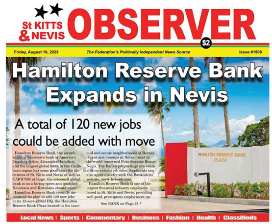 St. Kitts & Nevis Observer: Hamilton Reserve Bank expansion could add 120 new jobs
